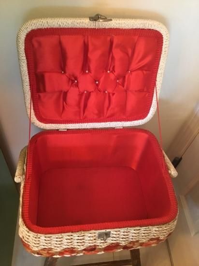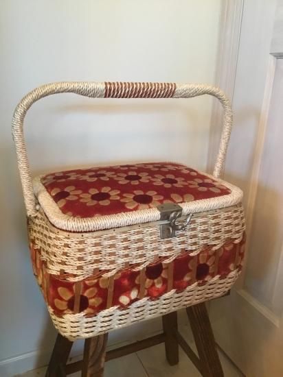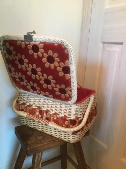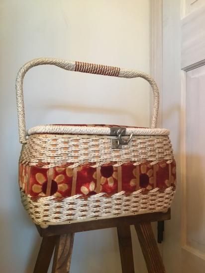 籠製/花柄/長方形/裁縫箱/ソーイングボックス