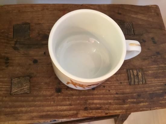 絵柄の擦れはありませんが、高台部分(カップの裏側)に汚れがあります。
