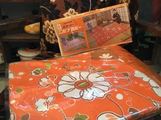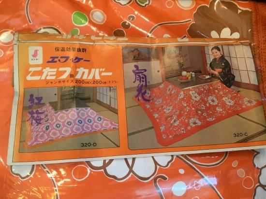 オレンジ色が鮮やかな花柄のこたつカバー