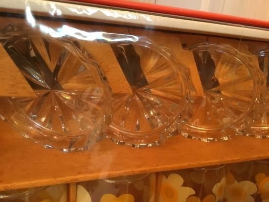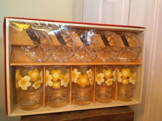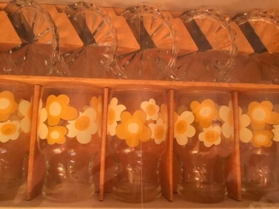 レトロポップな花柄グラスと、コースターがそれぞれ5客入っております。