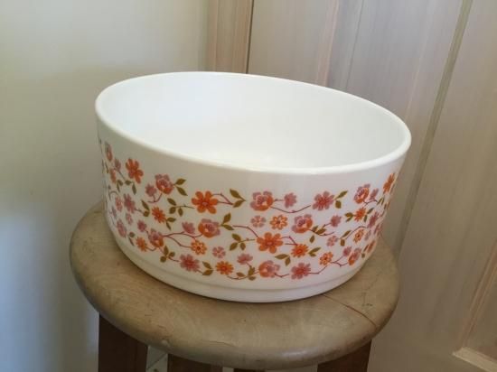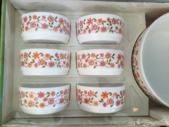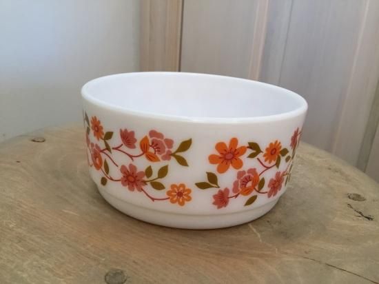 オレンジとピンクの小花柄が可愛らしいアルコパルのミルクガラス
