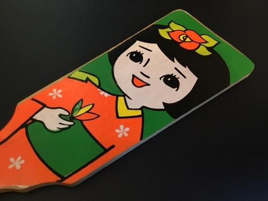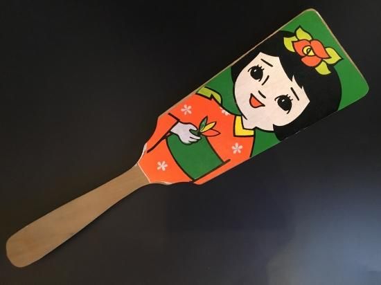 女の子のイラストが可愛らしいレトロな羽子板、当時物です。