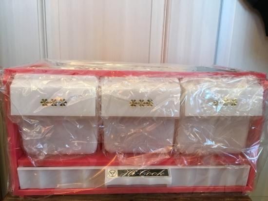 3連の調味料ケースに、スプーンやフォークを収納する引き出しがついたタイプです。