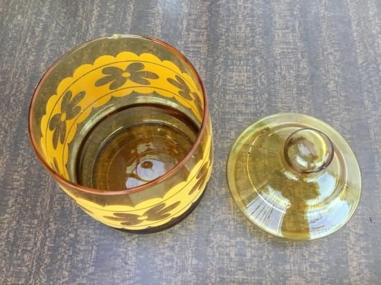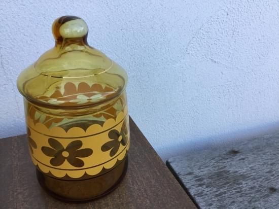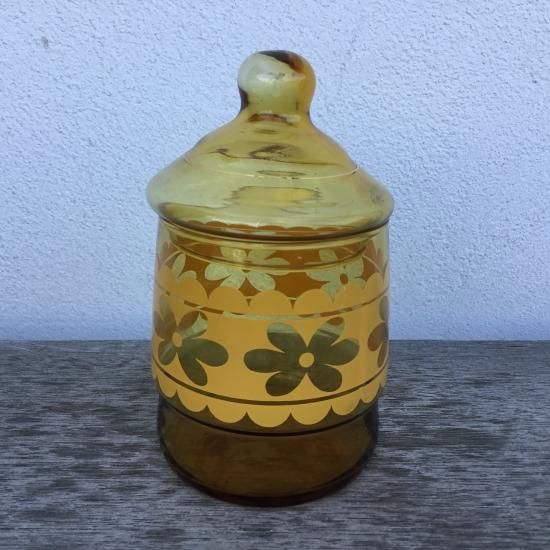 レトロなアンバー色とお花柄のプリントがとても可愛らしいです