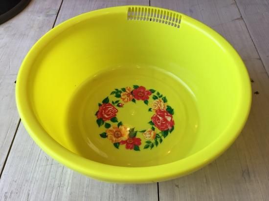 花柄プラスチック桶 / たらい/ 洗面器 イエロー網目あり