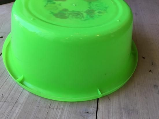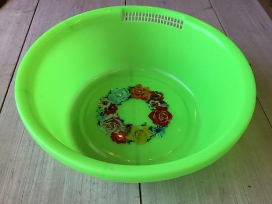 花柄プラスチック桶 / たらい/ 洗面器 黄緑色バラ柄網目あり