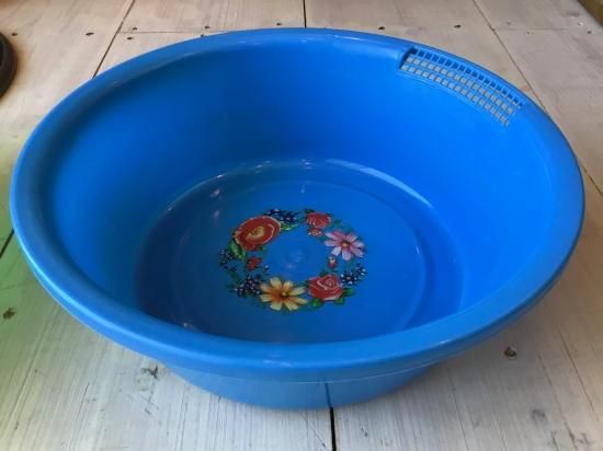 花柄プラスチック桶 / たらい/ 洗面器 ブルー網目あり