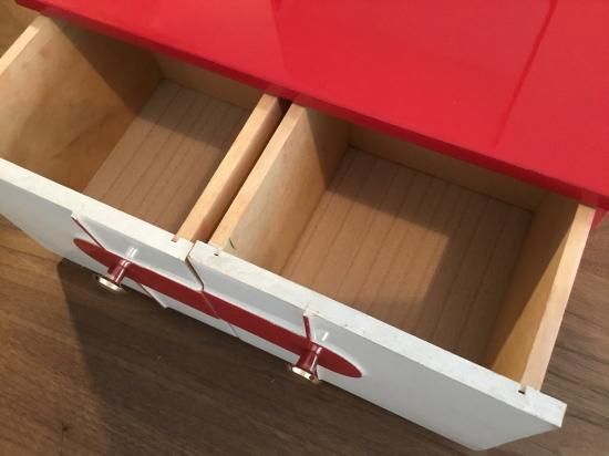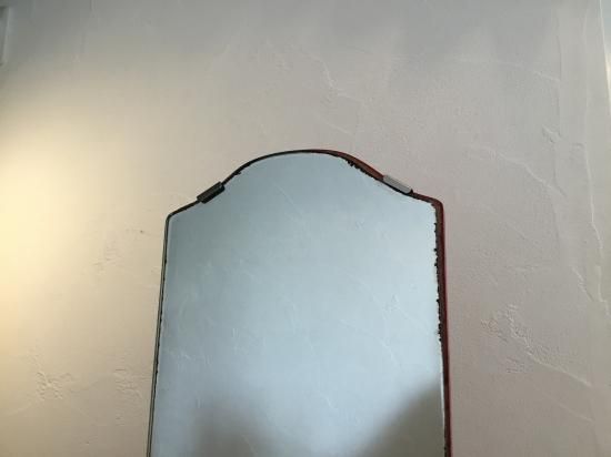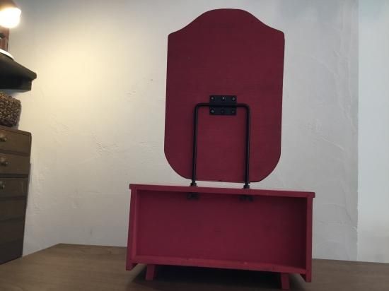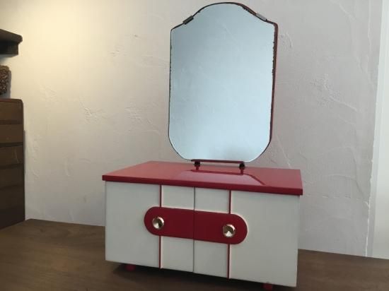 天板部分は艶のある赤色、ミラーのカーブもおしゃれです♪