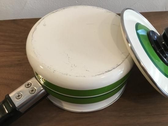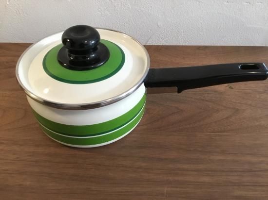 グリーンのラインが目をひく小さめサイズの片手鍋です。