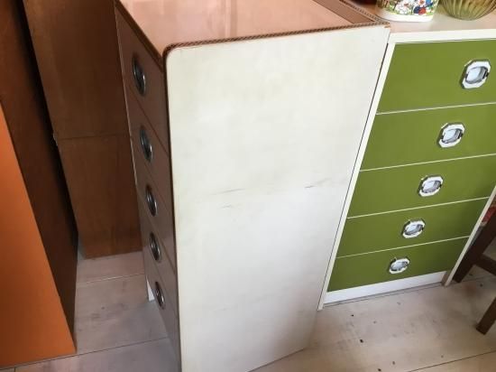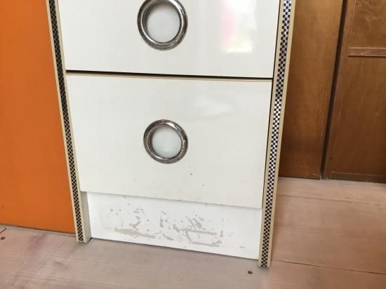 丸い取っ手が可愛らしいレトロポップな白い小タンス