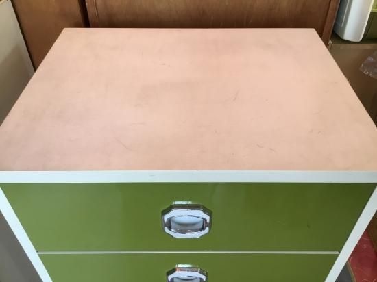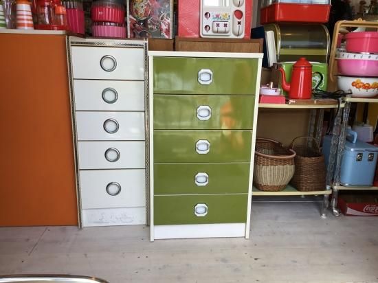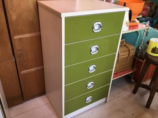 丸い取っ手が可愛らしいレトロポップな緑色の小タンス