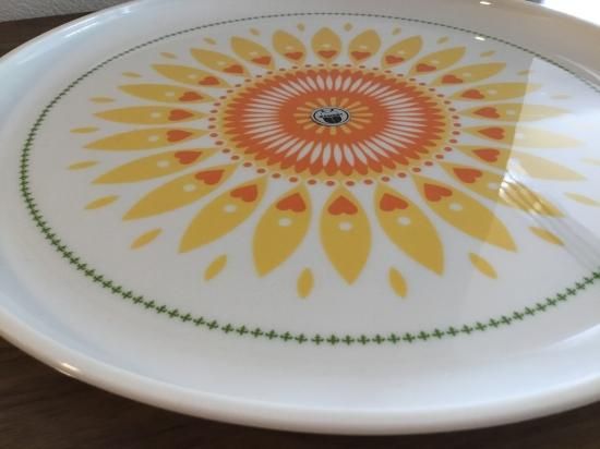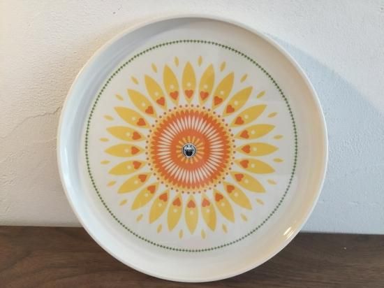 キッチンに立てかけておくだけで元気がもらえそうなひまわり柄の丸盆です。