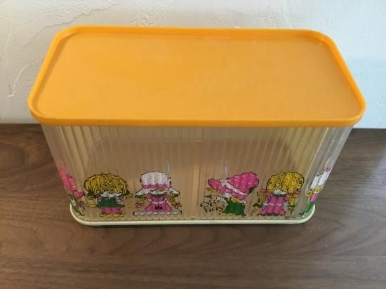 オレンジ色の天板と、可愛いこどもたちのイラストがレトロポップで、あまり見かけない珍しいデザインです。
