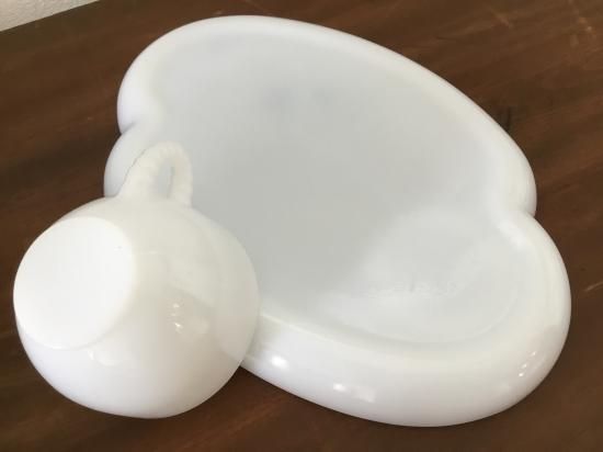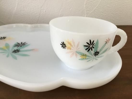 アメリカよりフェデラル社のミルクガラス製スナックセットです。