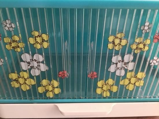 グリーンの本体と、お花のイラストがレトロポップで、あまり見かけない珍しいデザインです。