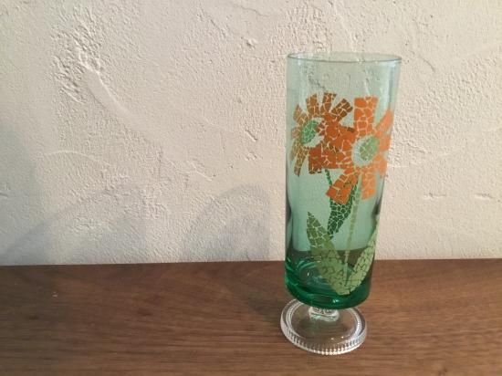 アデリア 脚付きグラス 貼り絵 【レア品】