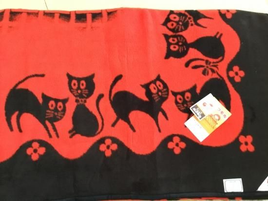 ブラックとレッドの色合いが鮮やかで、クロネコと花柄が存在感抜群です。