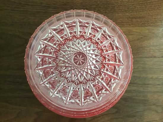 濃いピンクのような赤色で、深さのあるサイズです。