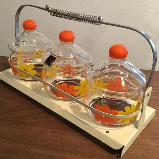 ガラスポットが3個セットになっていて、ホルダーに収納できます。