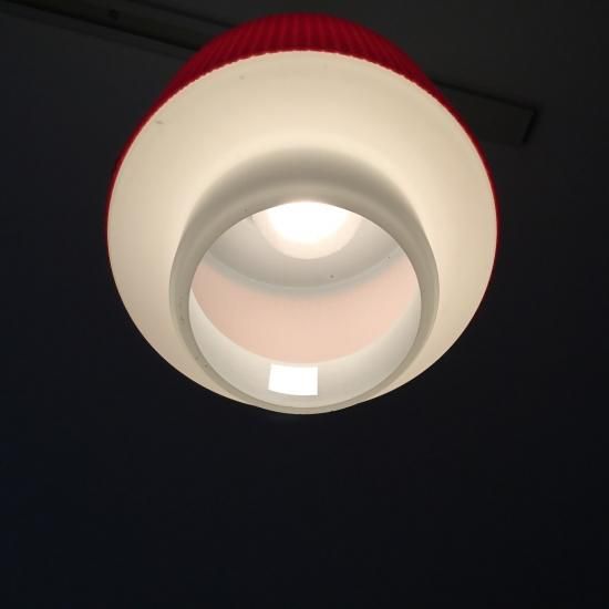 赤と白のコントラストがレトロポップなペンダントライトです。