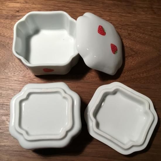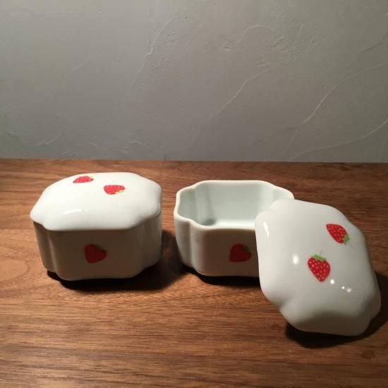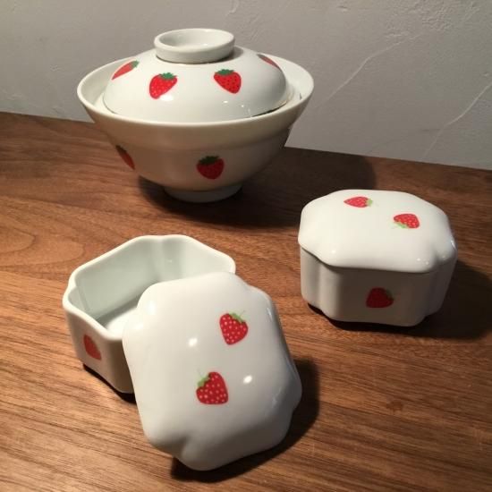 いちごの柄が可愛らしい蓋付きの小鉢です。
