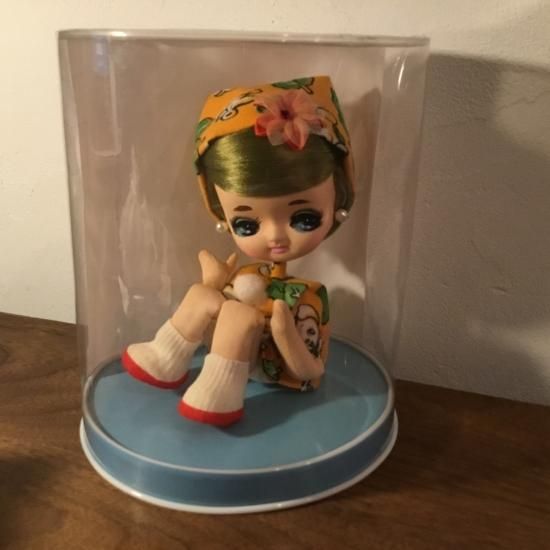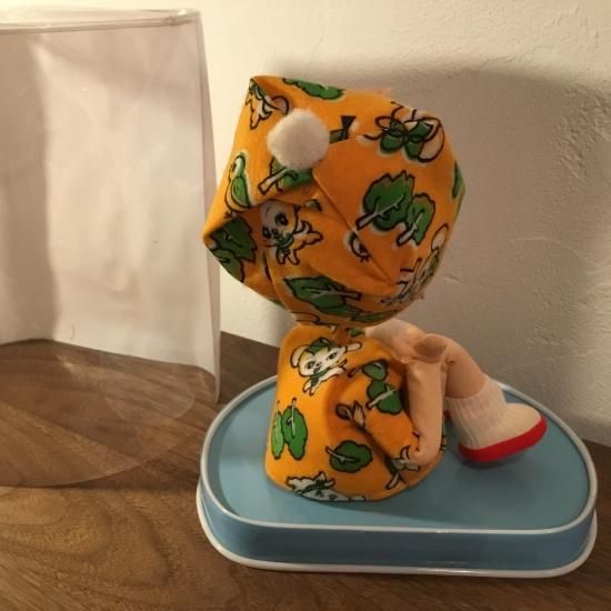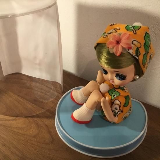 ワンちゃん柄の衣装が可愛らしいお座りポーズ人形です。