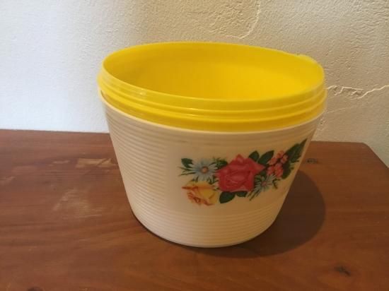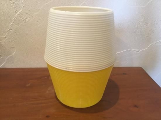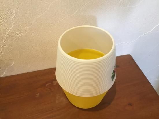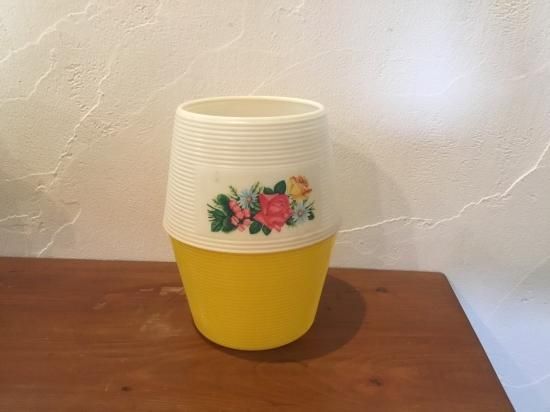 イエローとホワイトのコントラストがレトロポップな花柄のゴミ箱です。
