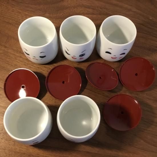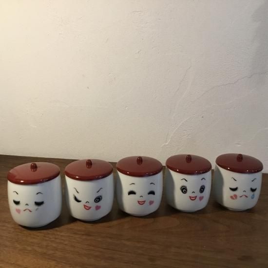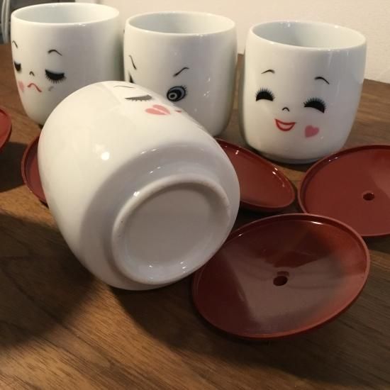 スマイルや泣き顔、怒り顔など、表情豊かな顔が描かれた可愛い湯呑みセットです。