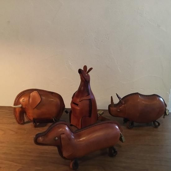 鴻池製作所 本革製 動物貯金箱【サイ】