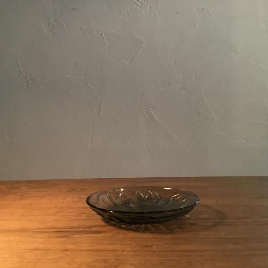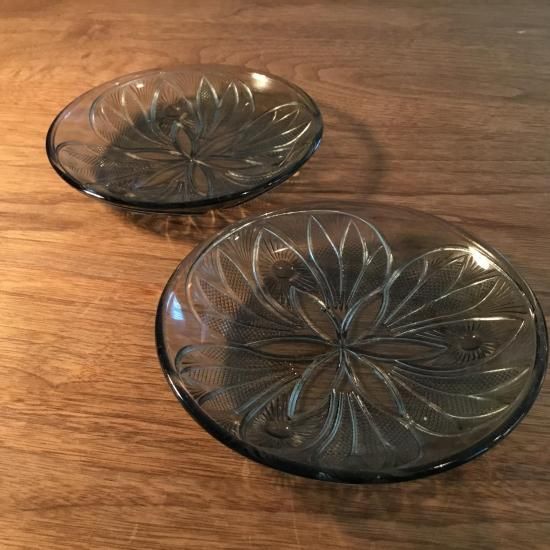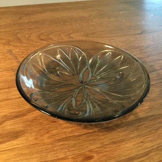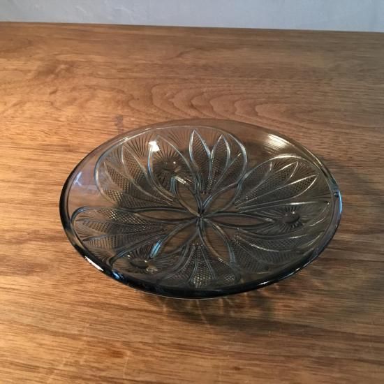 和ガラス食器 グリーングレーのリーフ文様 平皿