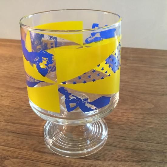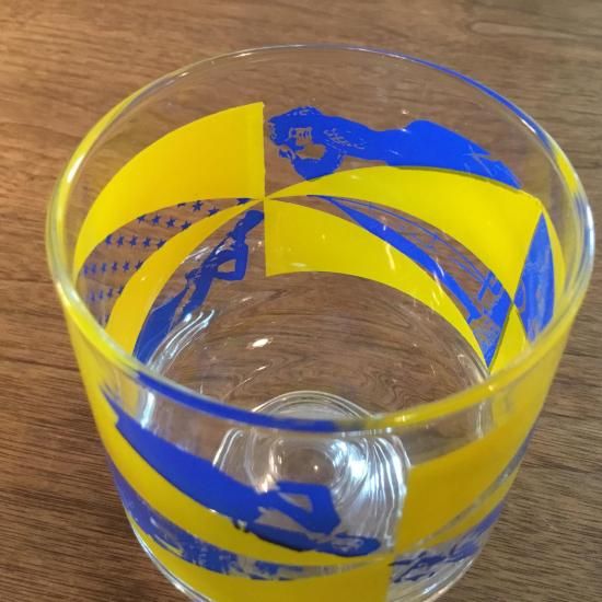 モダンな人物と建物が描かれていてカッコいいグラスです。